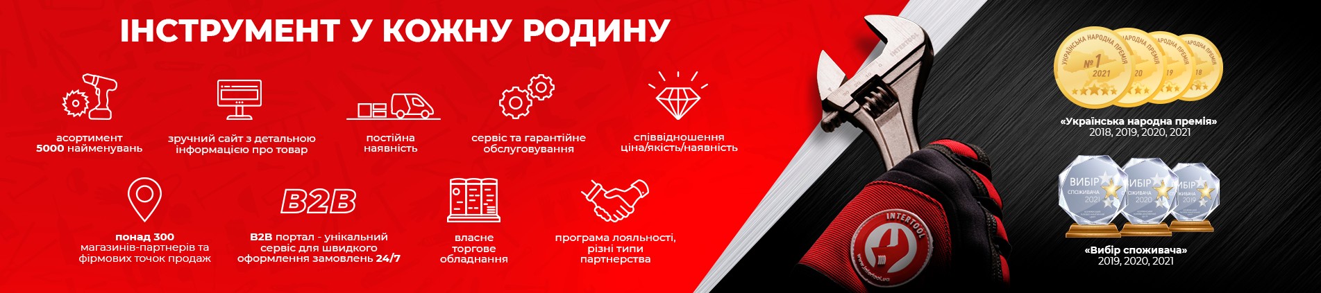 INTERTOOL робить життя комфортнішим та кращим за допомогою доступних і якісних будівельних інструментів. Широкий вибір, понад 4000 позицій, допомагає майстрам на будівельних майданчиках, СТО і в ремонтних майстернях виконувати свою роботу якісніше та швидше. А велика мережа магазинів-партнерів у багатьох містах України - Київ, Харків, Львів, Одеса, Дніпро та ін. - робить інструмент INTERTOOL ближче до користувачів.